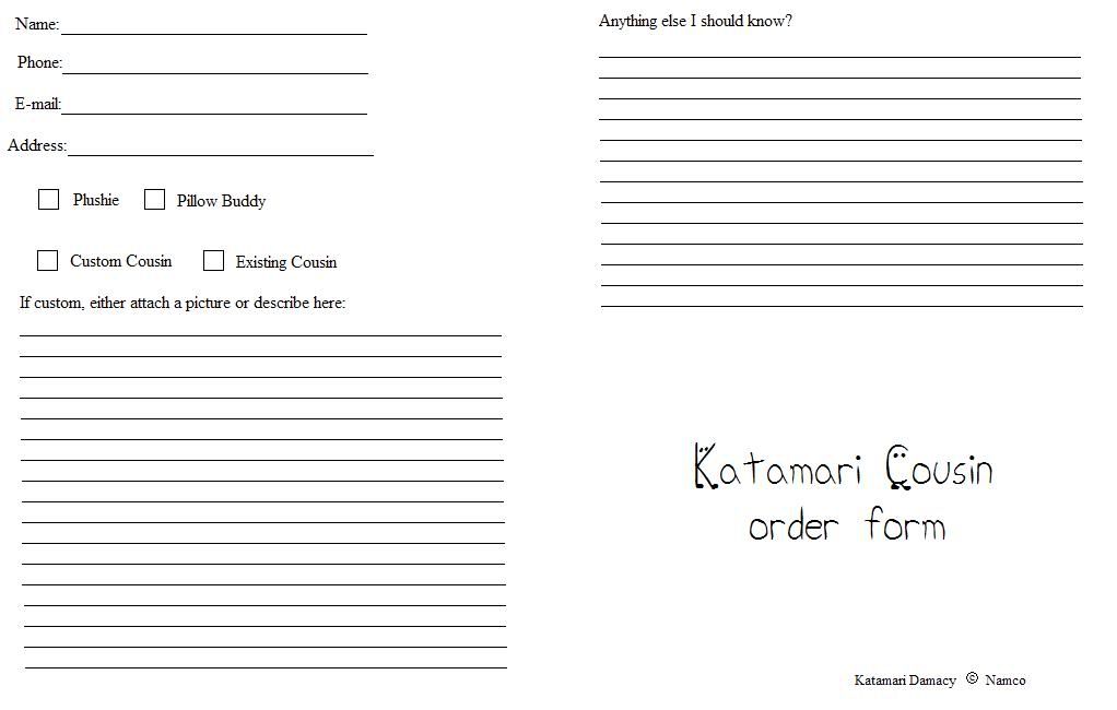 I have started creating Katamari cousin plushies and Pillow buddies. Once I get my camera working again, I will post pictures.